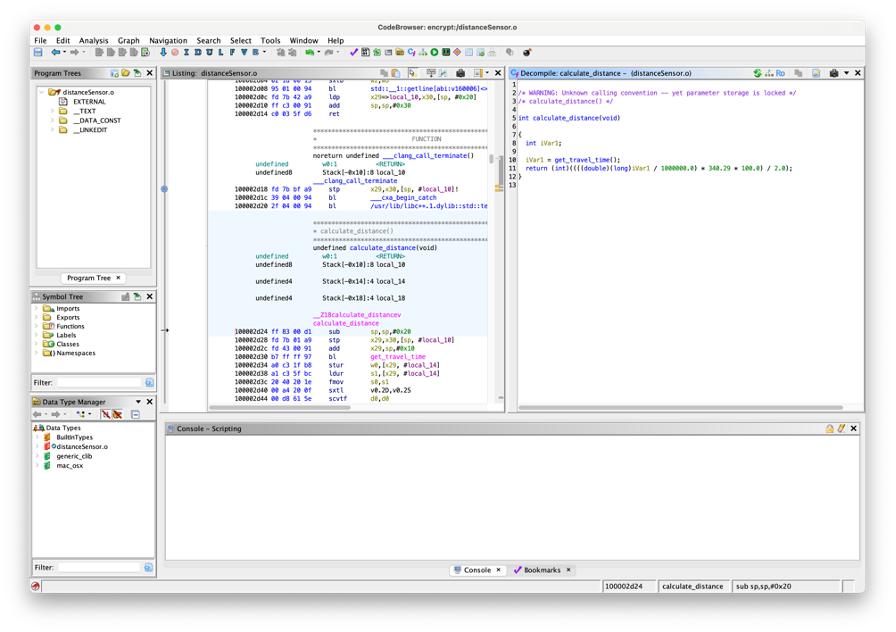 When the compiled binary of this sensor is examined in Ghidra, the decompiler’s capabilities truly shine. Ghidra presents a side-by-side view: on the left, the original disassembly, and on the right, the decompiled output. It’s in this right panel where Ghidra demonstrates its prowess. The decompiler doesn’t just interpret the binary; it almost perfectly reconstructs the function, making the proprietary algorithm readily understandable. This level of accessibility is a double-edged sword: it allows for educational insights but also exposes potential vulnerabilities. Competitors or others with sufficient technical knowledge can dissect and analyse this proprietary intellectual property with relative ease; given the power of the decompiler, this can even be achieved by non-experts, with a basic understanding of programming.