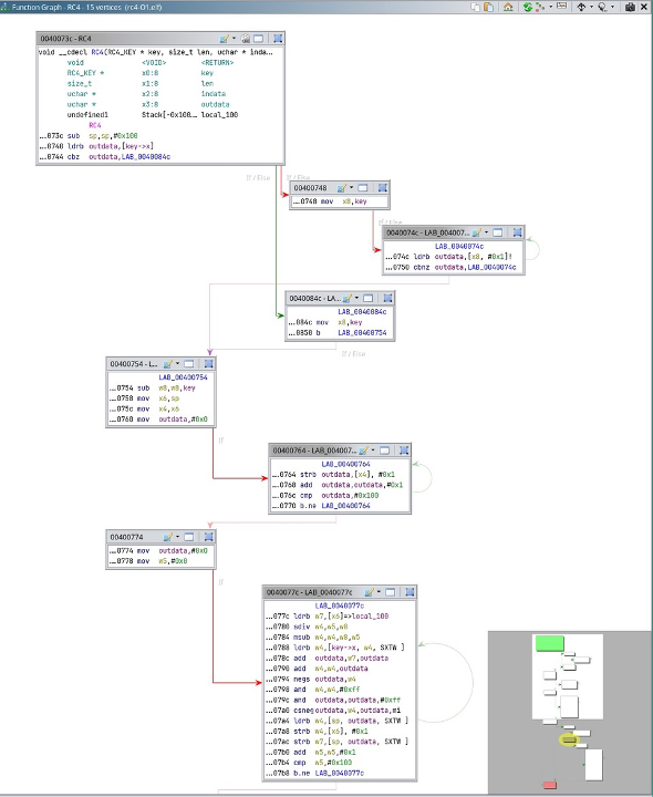 Control-flow graph (CFG) analysis is an essential technique in reverse engineering, providing a visual representation of a function’s structure. By scrutinising the graph, one can effortlessly reconstruct the high-level logic of a function, including conditional statements, loops, and more. The CFG is generated by analysing the disassembled code, presenting a comprehensive overview of distinct code blocks and potential execution paths within the function. This graphical representation aids human analysts in several ways. It helps them identify recurring patterns in the code, facilitating a deeper understanding of its logic. By visualising the different code blocks, analysts can concentrate on the pertinent sections, avoiding unnecessary distractions and saving time during the analysis. Analysts can explore various execution paths, understanding how the program flows under different conditions. This is particularly valuable for comprehending complex or conditional logic within the function. Overall, CFG analysis enhances the efficiency and effectiveness of reverse engineering efforts, providing a structured visual map that guides analysts through the intricacies of the disassembled code. Our Co-Founder Tim Blazytko shared insights into CFG analysis in a recent blogpost: https://147687914.hs-sites-eu1.com/tech-blogs/introduction-to-control-flow-graph-analysis