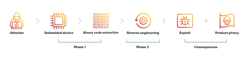 Depending on the scenario, it might not even be necessary to dump the binary from the device, as some software is provided as a compiled library, for example, downloadable firmware. This gives actors with malicious intent immediate access, and they can continue with phase two – software reverse engineering.